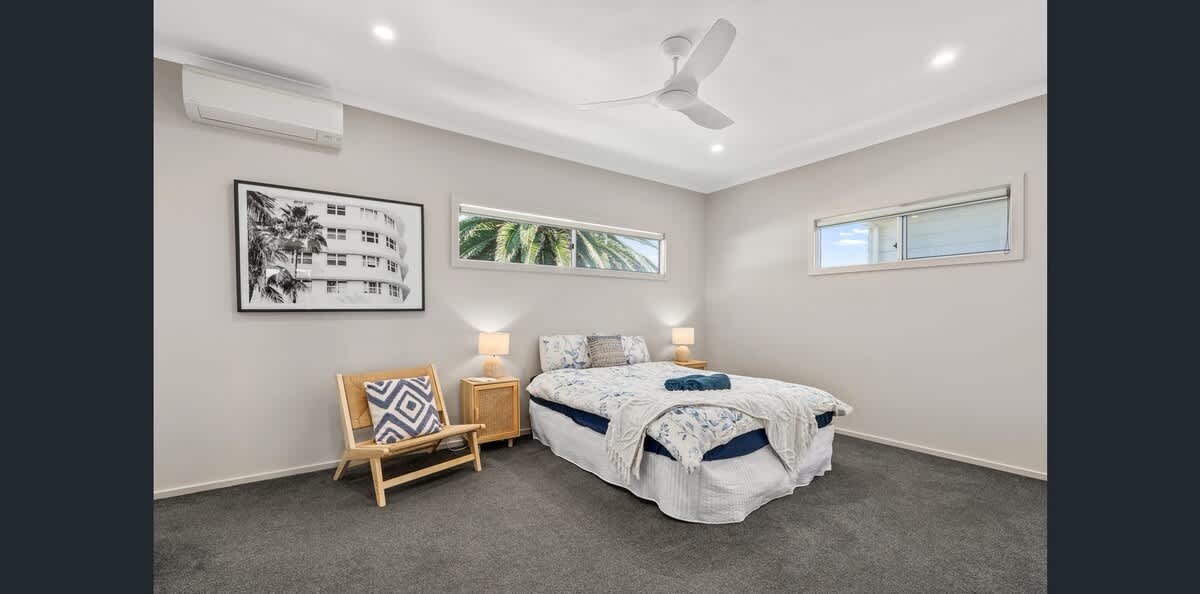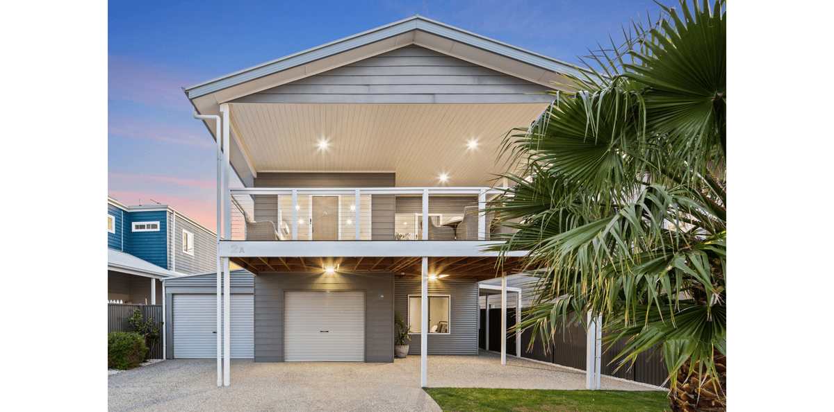 This stylish two-storey beach house offers modern comfort and a flexible layout designed for group getaways.