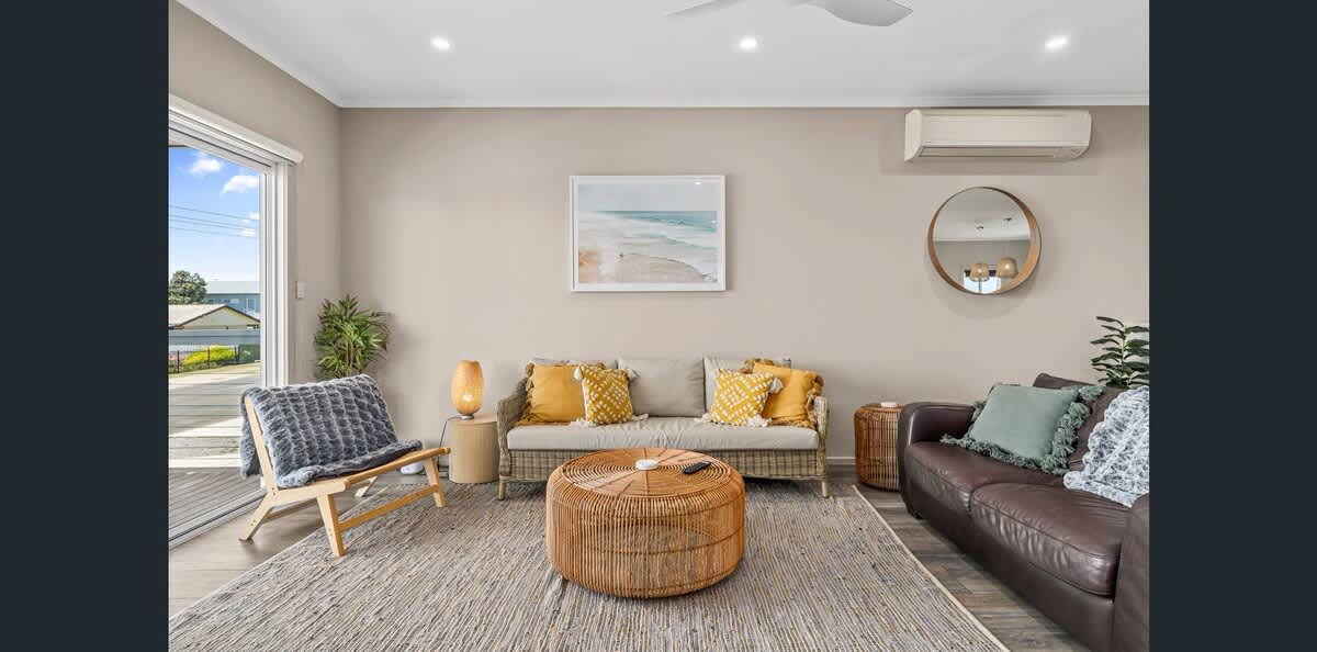 Enjoy breathtaking ocean views from this modern, sunlit coastal retreat just a minute's walk from stunning Aldinga Beach. With stylish interiors, spacious living areas, and an expansive balcony perfect for entertaining, this beachside gem now sleeps up to 13 guests. Ideal for families or groups, the updated layout offers five bedrooms, multiple lounge zones, and all the comfort you need for a relaxing seaside escape.