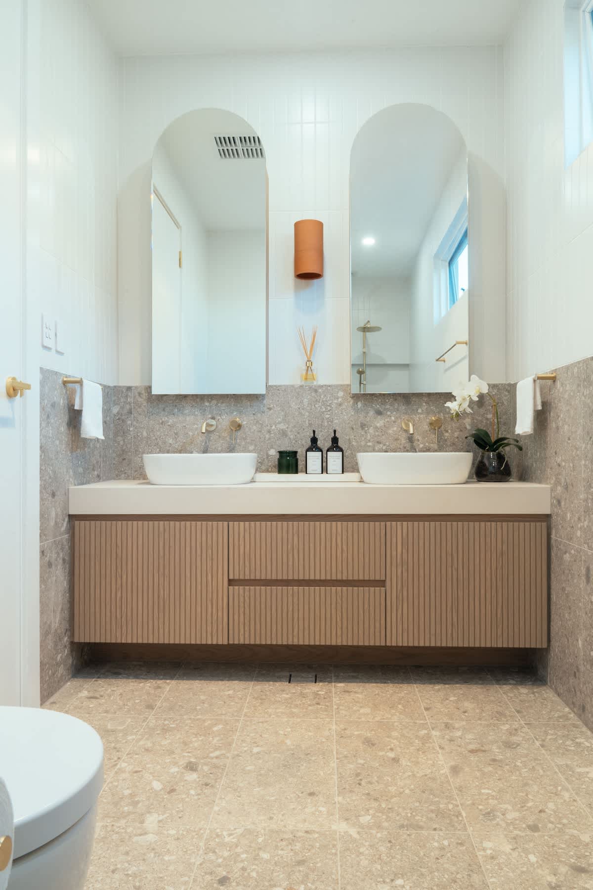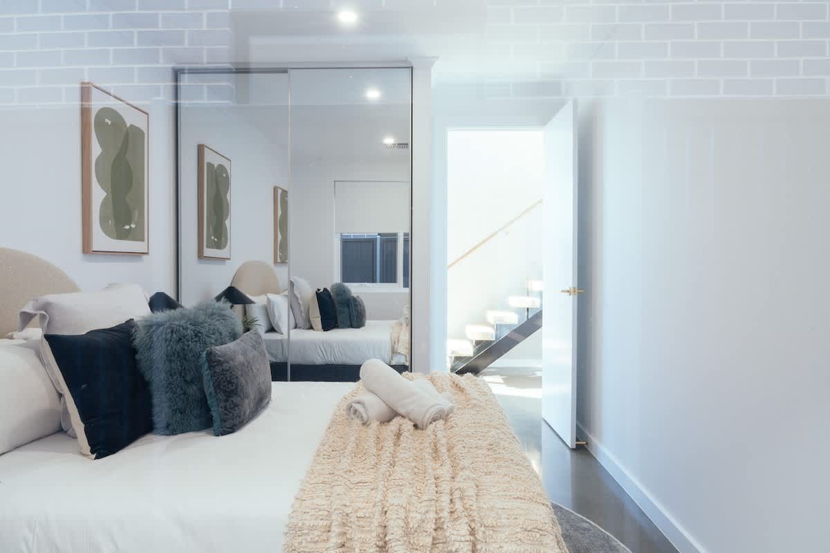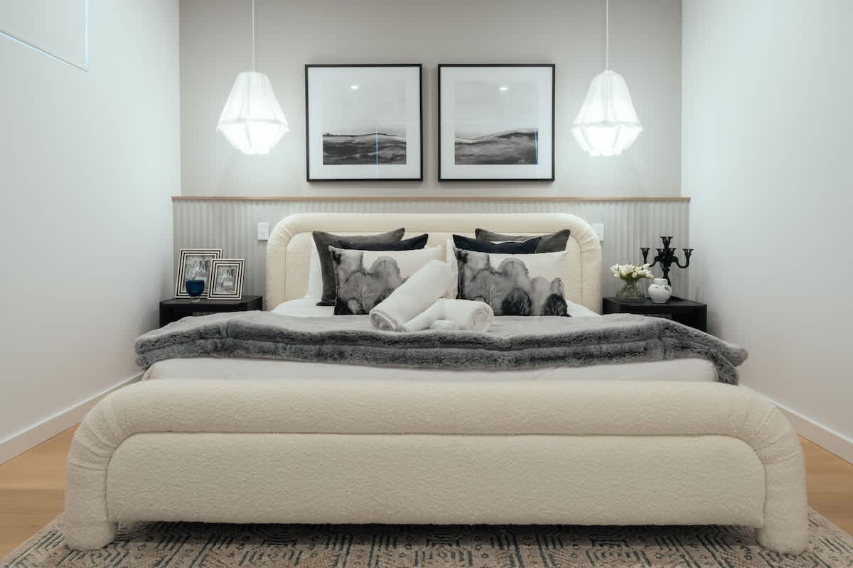 Master Suite (Upstairs) – A luxurious escape with a king-size bed, walk-in wardrobe, and a private ensuite featuring a double vanity, shower, and toilet.