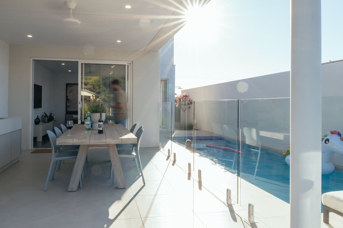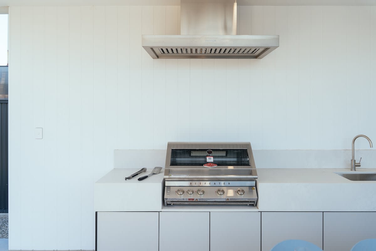 Step outside to your private backyard paradise, where a sparkling pool awaits for refreshing dips on warm days. The covered outdoor dining area is complete with an inbuilt BBQ and outdoor kitchen, making it the perfect space for al fresco meals after a day at the beach.