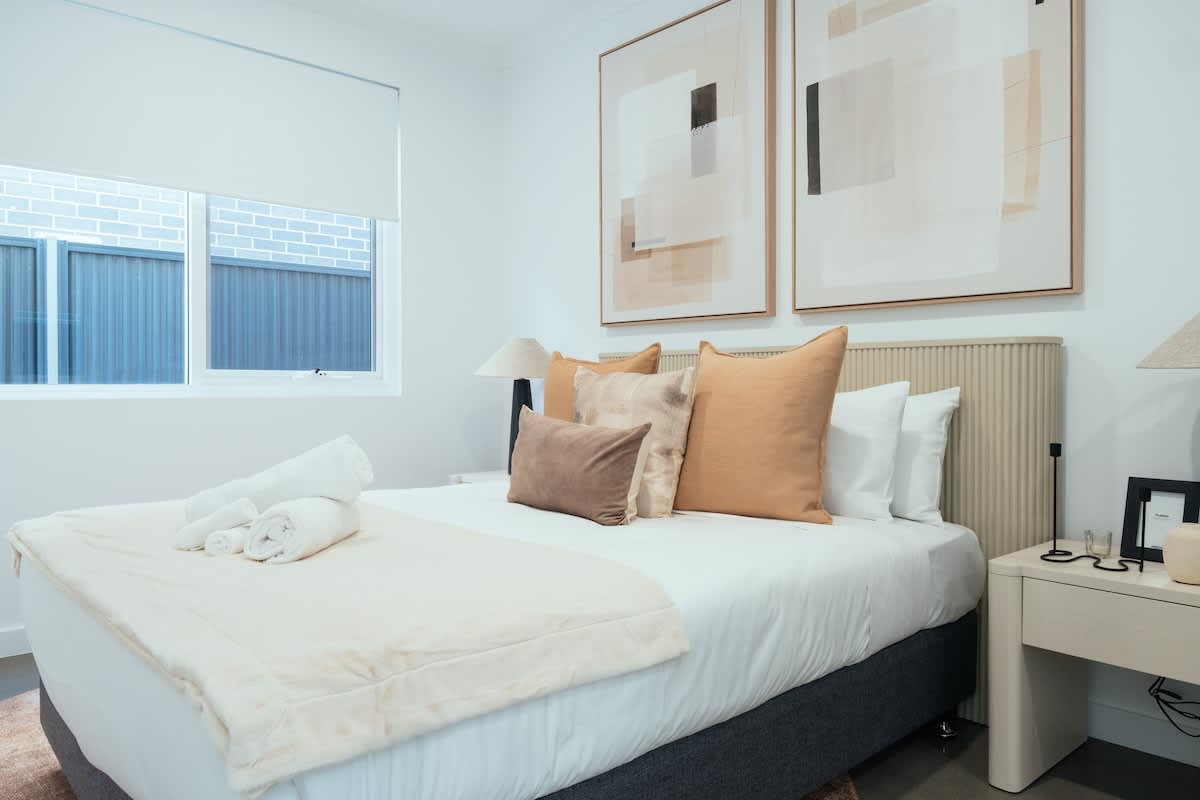 Bedrooms 2, 3 & 4 (Downstairs) – Each beautifully designed with queen-size beds, premium bedding, and ample storage space.